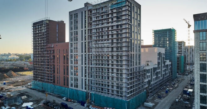 AFI Development завершила монолитные работы в корпусе Луч 4 семейного квартала «Одинбург». Строители залили последний куб бетона в парапет здания и приступили к следующей фазе девелоперского цикла.